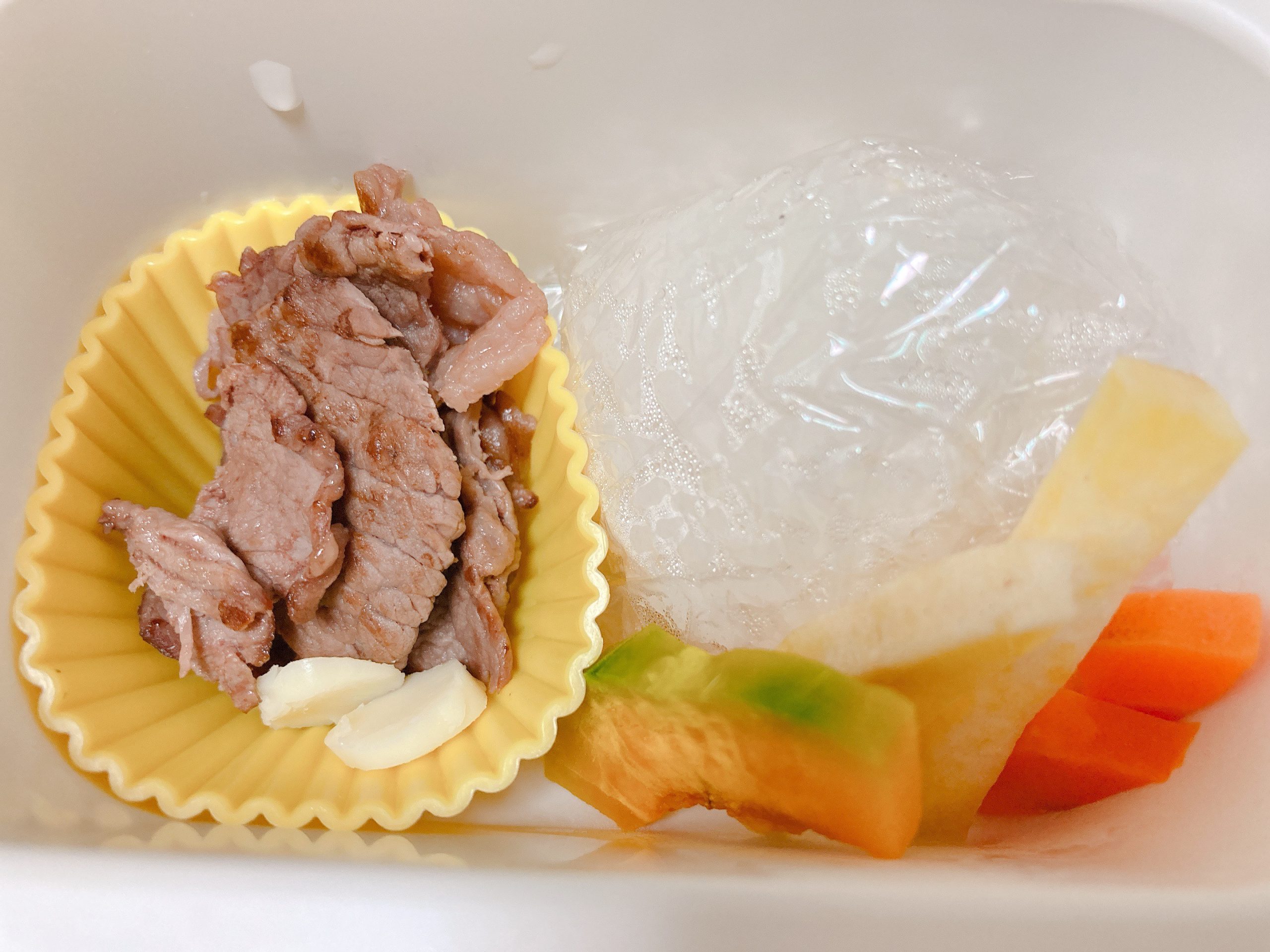 *牛肉焼いた物*チーズ*かぼちゃ*人参・さつまいも*おにぎり
