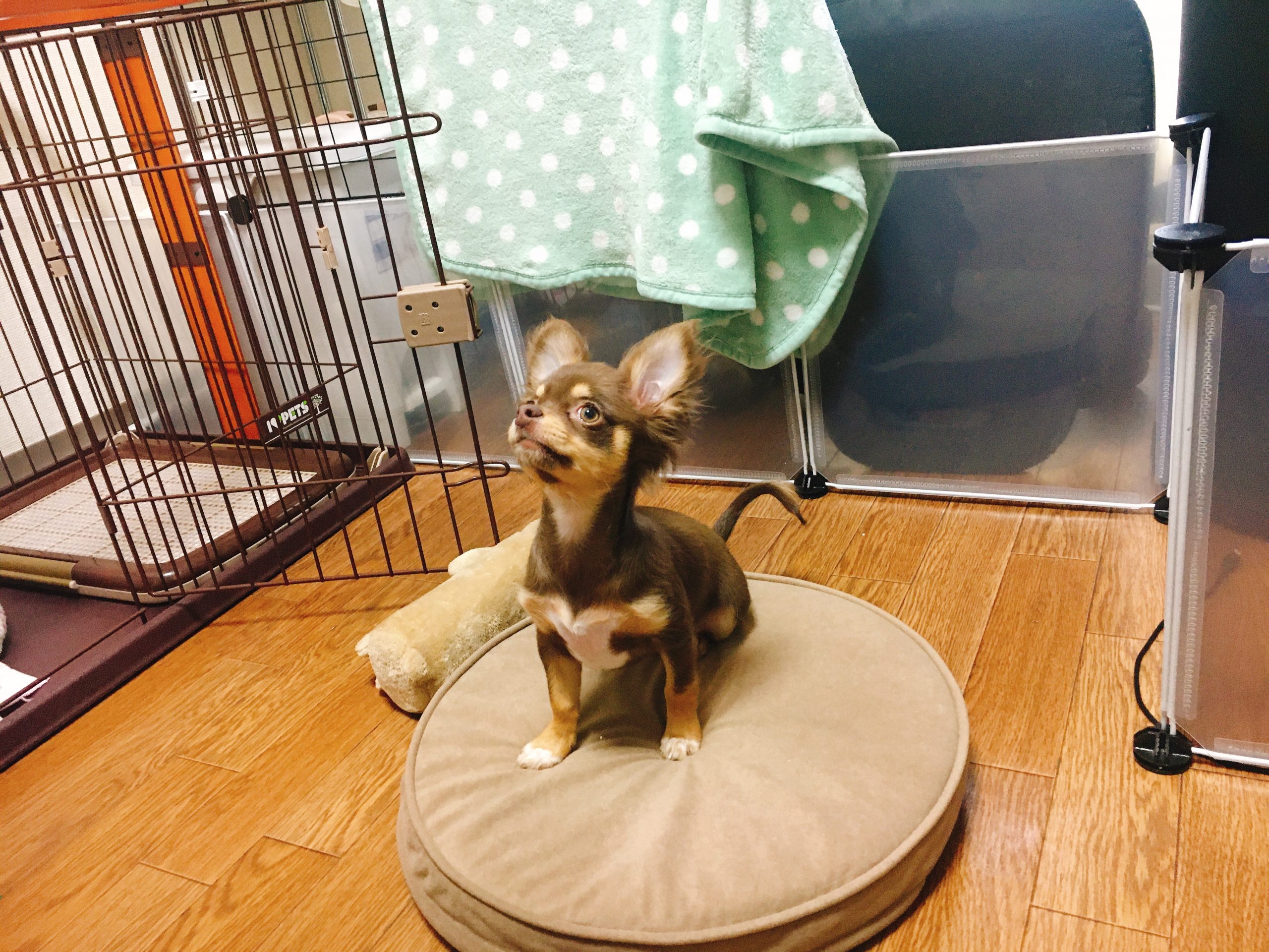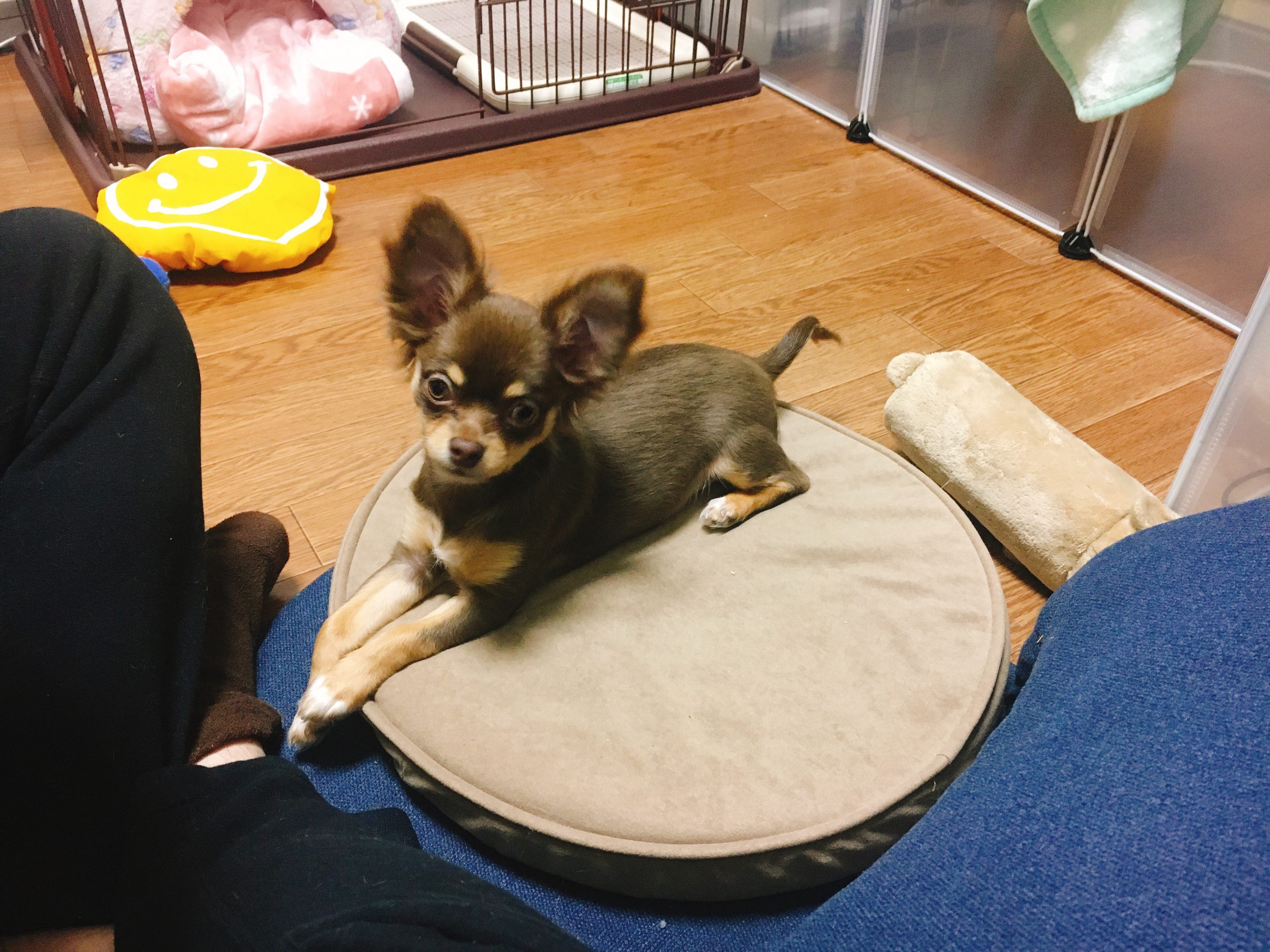 この時は冬場だったので冷たい床に「伏せ」をするのは嫌そうで座布団の上を選んでさせていました。