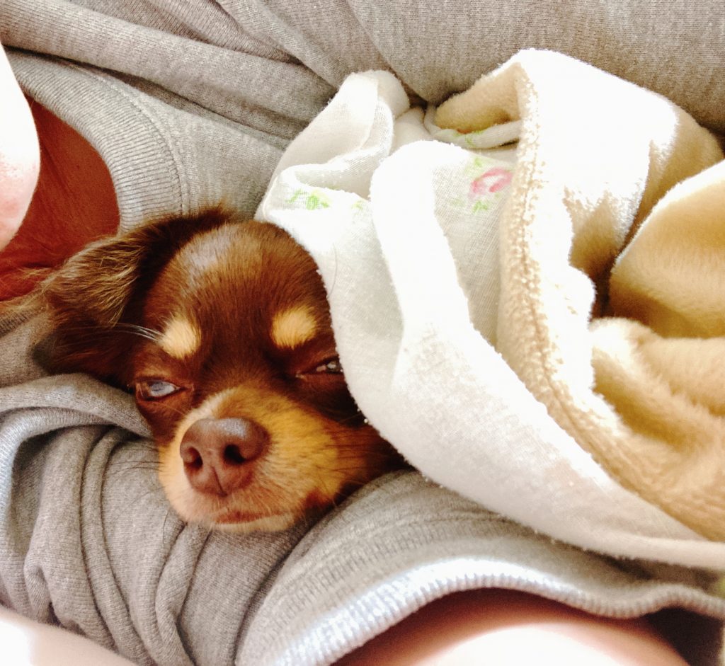 あんこ(チワワ1歳3ヶ月)は寝る時に一緒に布団に入ると私の上半身を舐める癖がありました。
